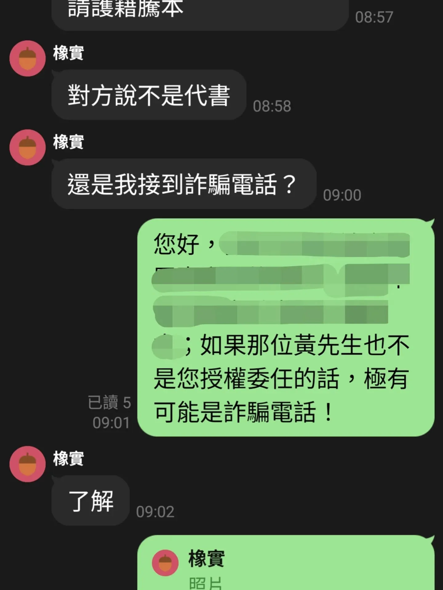 有客戶收到自稱「地政事務所」的來電,表示土地異動需確認資料。經本所與地政機關查證,根本未發出任何通知。地政機關不會主動用私人手機號碼撥打電話,遇到請立即掛斷並聯繫我們查證!