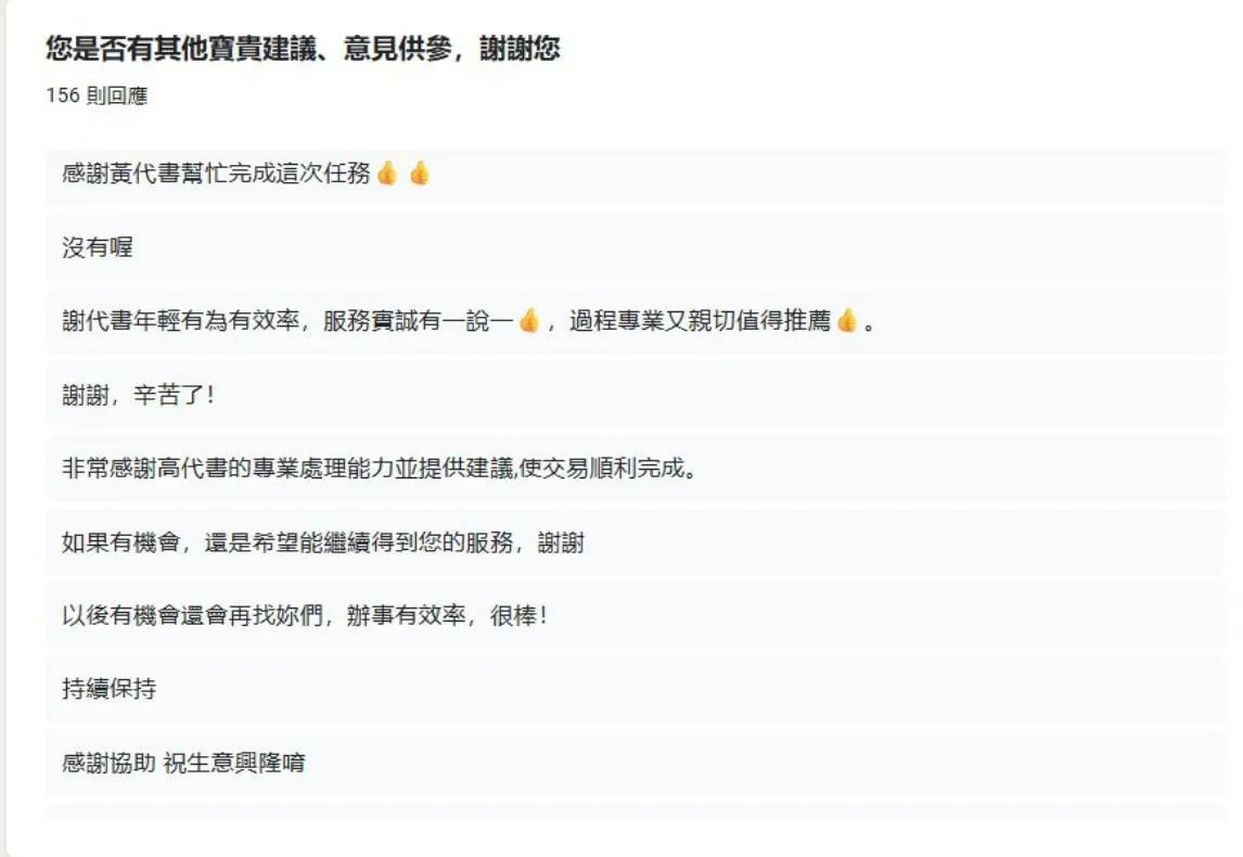 最近整理了這段時間的客戶回饋,看到滿滿的「謝謝」「很順利」「很專業」「期待下次合作」,真的很感動。